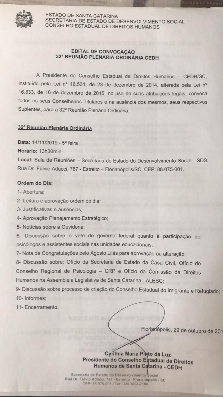 Edital Convocacao 26 Reunico Plenaria Ordinaria CEDH